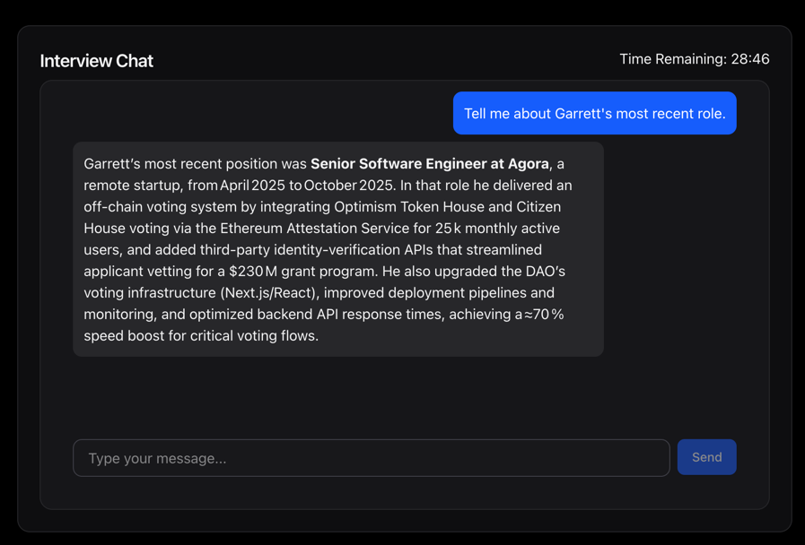 If you haven't had a chance to try out interviewing my AI agent yet, you can do so here!